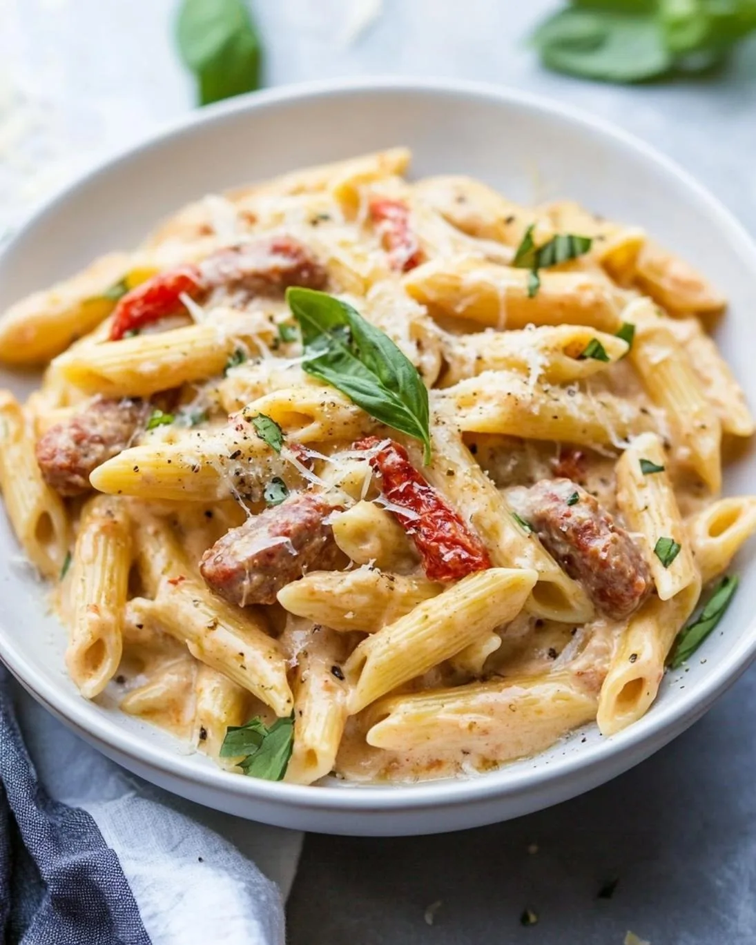 Presenting your Creamy Smoked Sausage Pasta Recipe beautifully enhances the dining experience.