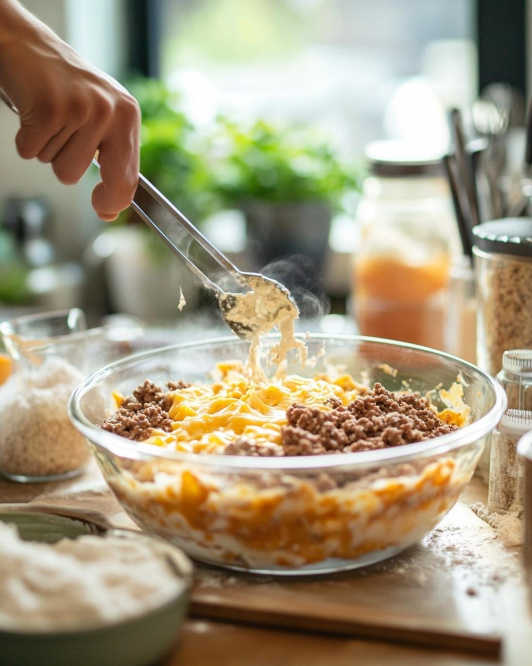 Preheat your oven to 375°F (190°C). Lightly grease a 9×13 inch baking dish. Evenly spread the frozen sliced potatoes O’Brien across the bottom of the prepared dish. These frozen potatoes are a fantastic shortcut, saving you precious prep time and ensuring a consistent texture. Next, pour the creamy ground beef mixture over the potatoes, spreading it carefully so that the potatoes are mostly covered. This layering ensures that the flavors meld together beautifully and the potatoes cook through evenly in the luscious sauce. For another delightful and comforting recipe, consider trying a hearty pasta fagioli on a chilly evening.